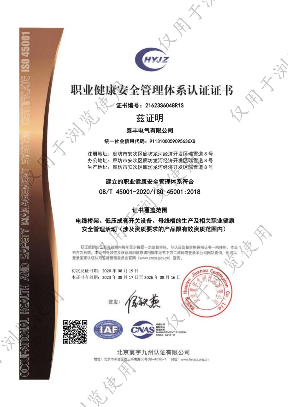 泰丰电气有限公司-职业健康安全管理体系认证书