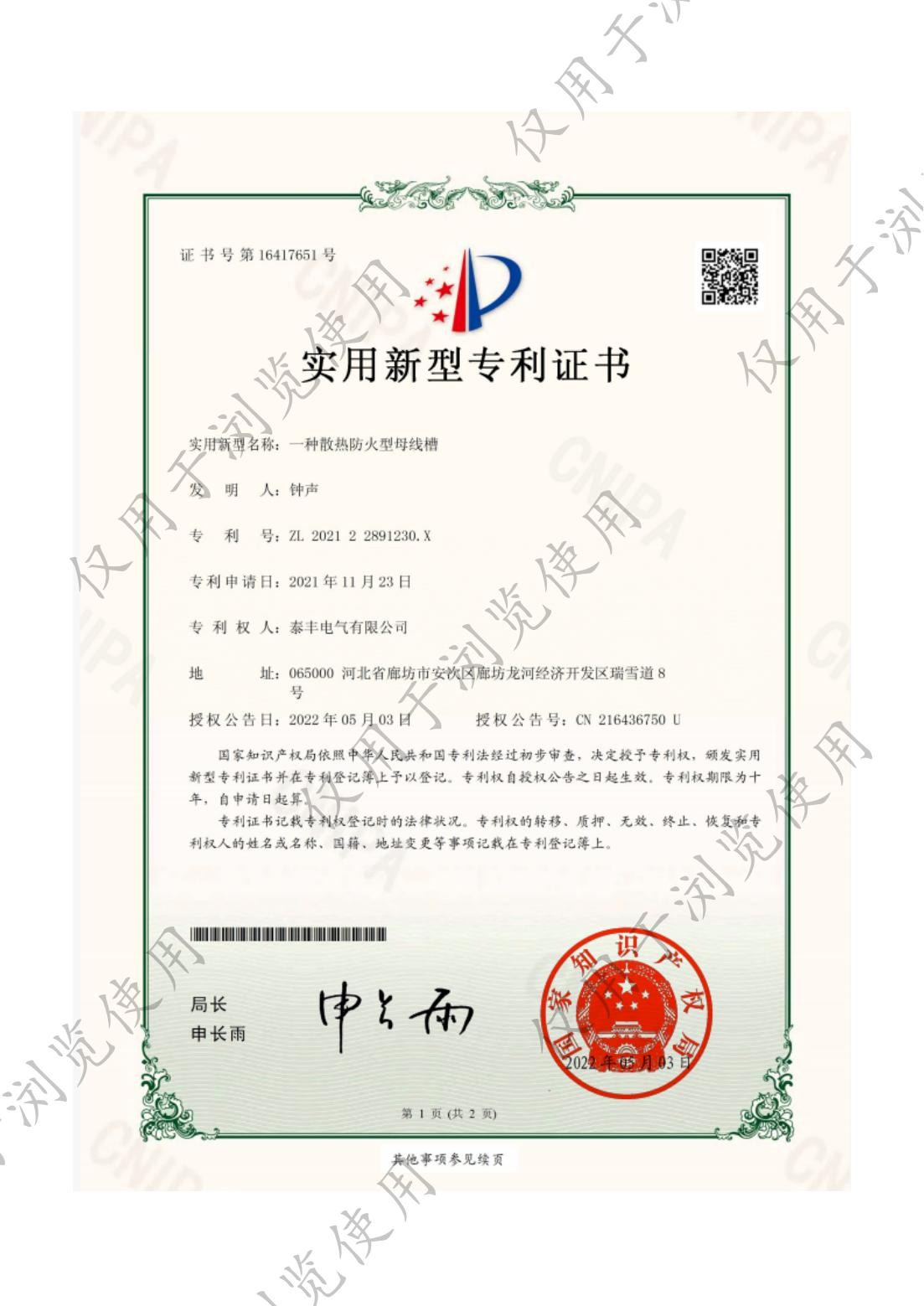 泰丰电气有限公司-一种其有节约空间的密集型母线槽