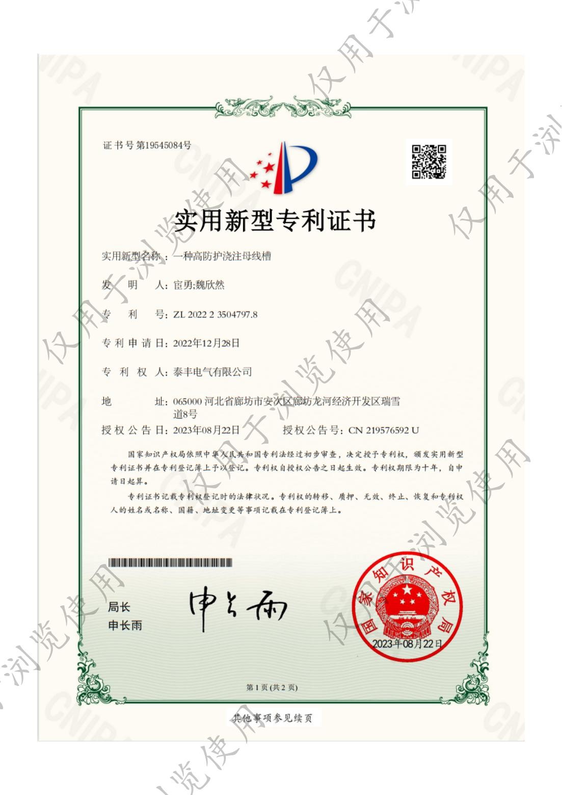 泰丰电气有限公司-一种高防护浇注母线槽